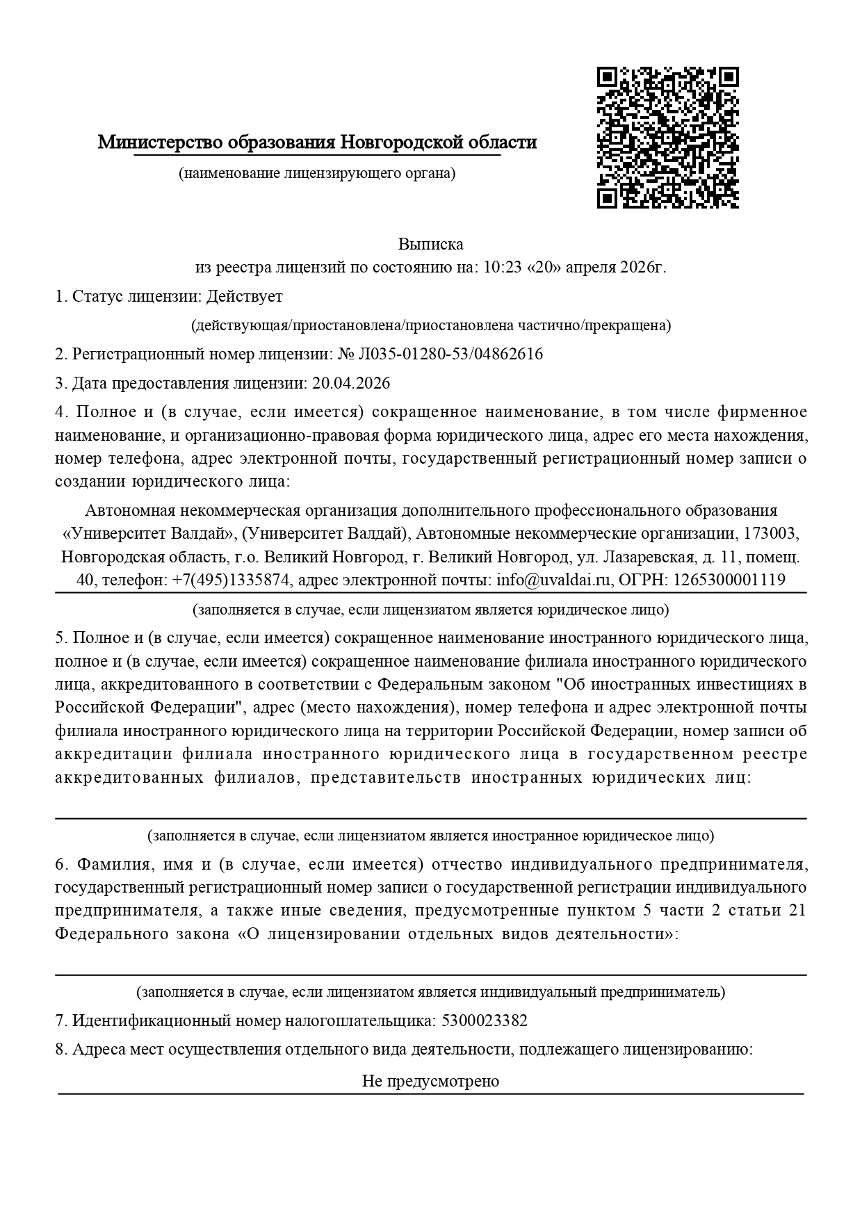 Автономная некоммерческая организация дополнительного профессионального образования «Университет Валдай»
