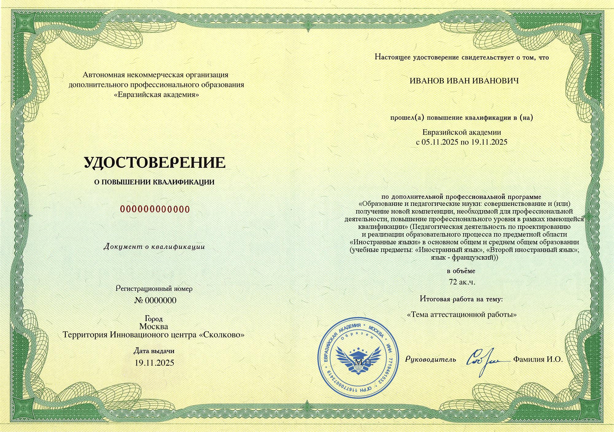 Педагогическая деятельность по проектированию и реализации образовательного процесса по предметной области «Иностранные языки» в основном общем и среднем общем образовании (учебные предметы: «Иностранный язык», «Второй иностранный язык»; язык - французский)