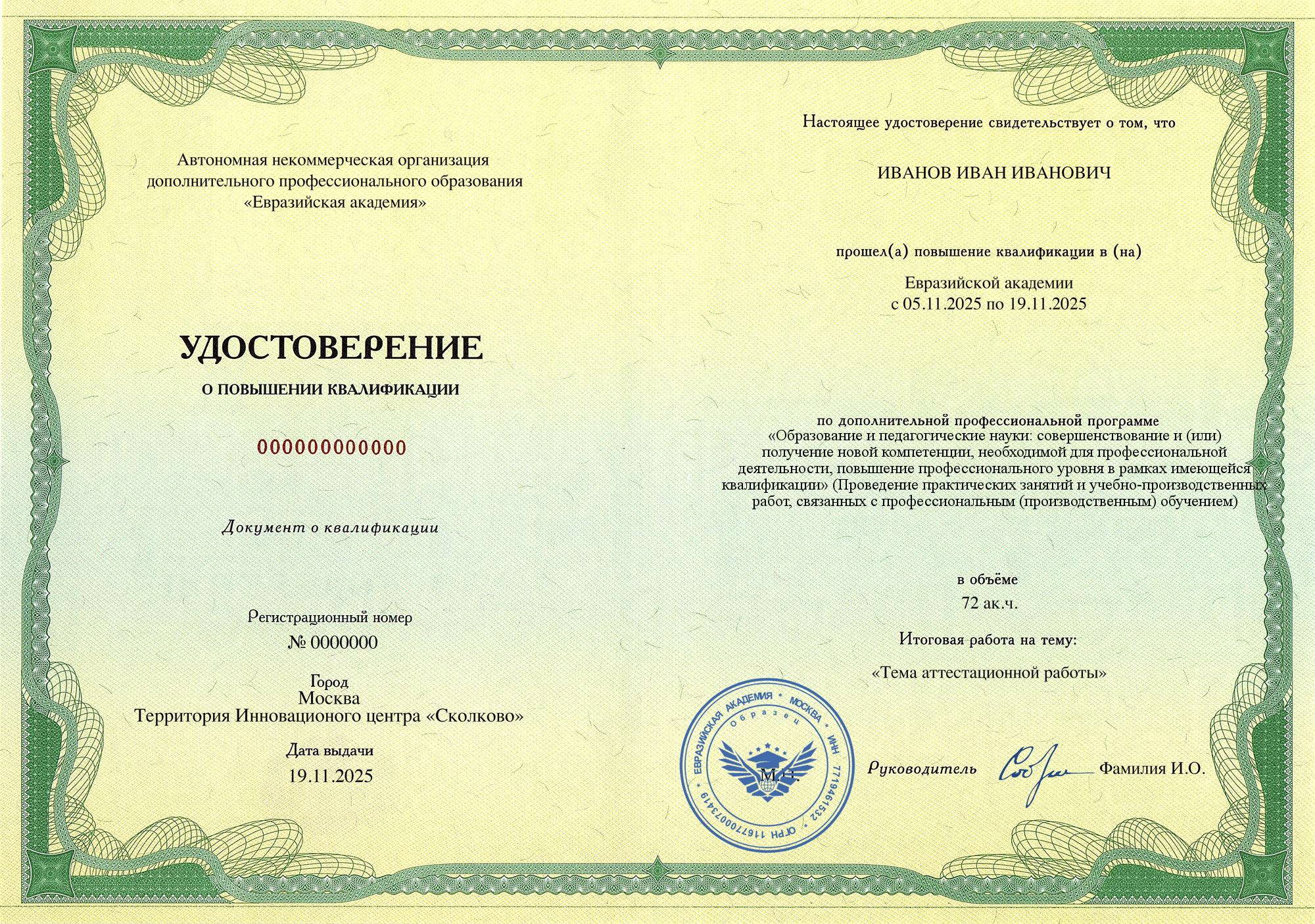 Проведение практических занятий и учебно-производственных работ, связанных с профессиональным (производственным) обучением