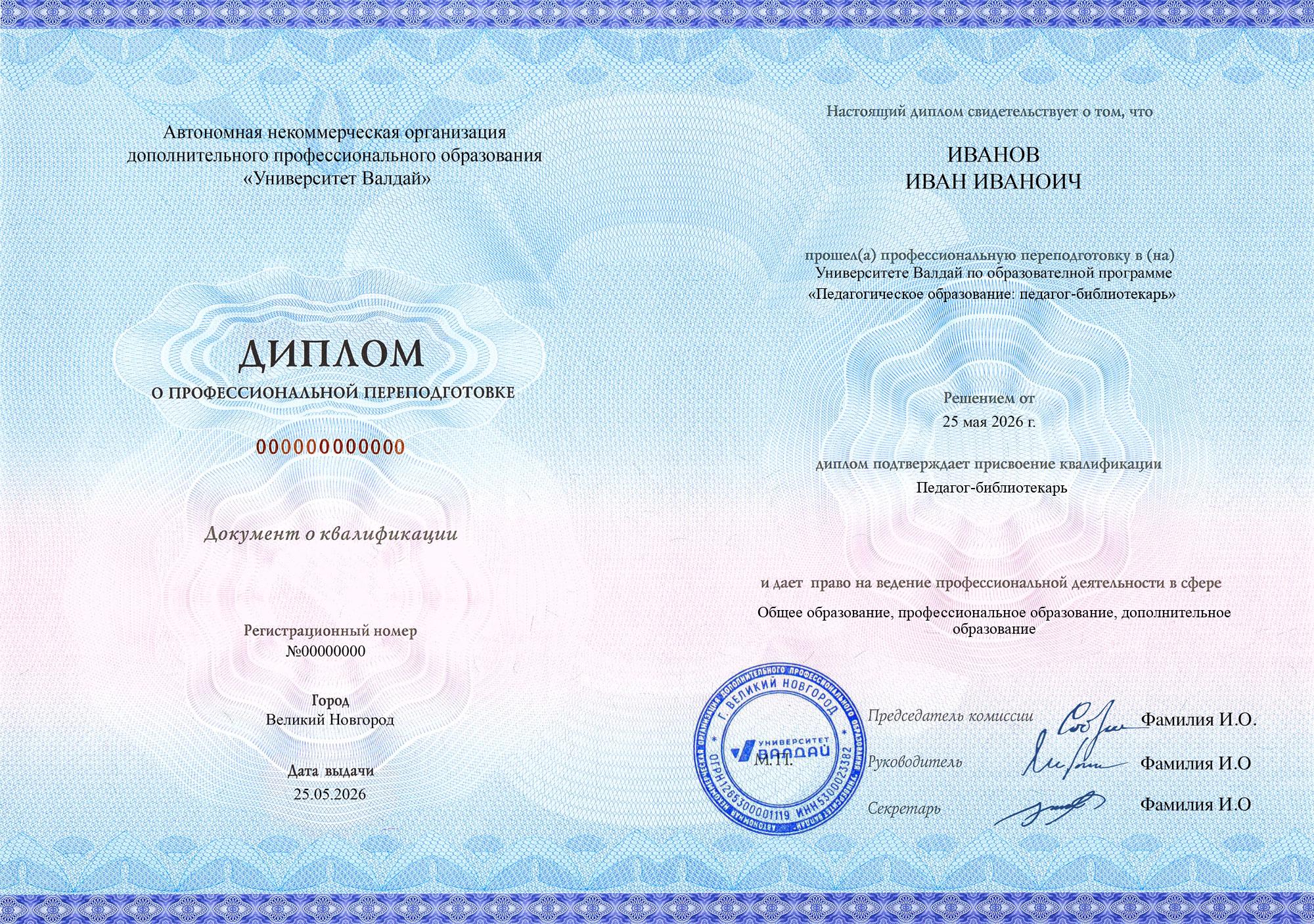 Выдаваемые документы полностью соответствуют новым (с 01.09.2025) требованиям закона и подходят для трудоустройства педагогом на всех уровнях образования и для всех видов образования (в соответствии с образовательной программой). Евразийская академия и Университет Валдай осуществляют образовательную деятельность на основании лицнезий на образовательную деятельности и специальных разрешений Сколково и ИНТЦ Валдай соответственно (смотреть), что требуется с 01.09.2025 согласно ч. 5.2. ст. 47 ФЗ «Об образовании в Российской Федерации» для того, чтобы выдаваемые документы принимались для трудоустройства педагогов по общеобразовательным программам.