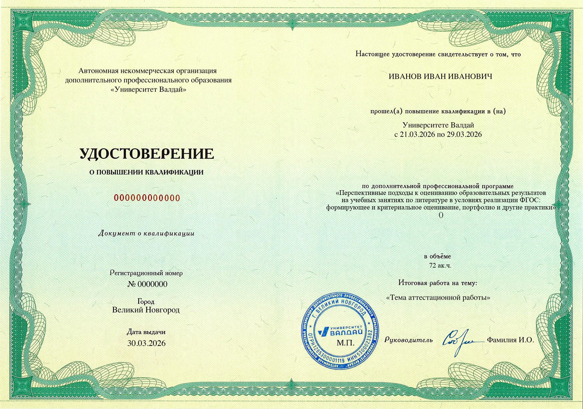 Выдаваемые документы полностью соответствуют новым (с 01.09.2025) требованиям закона и подходят для трудоустройства педагогом на всех уровнях образования и для всех видов образования (в соответствии с образовательной программой). Евразийская академия и Университет Валдай осуществляют образовательную деятельность на основании лицнезий на образовательную деятельности и специальных разрешений Сколково и ИНТЦ Валдай соответственно (смотреть), что требуется с 01.09.2025 согласно ч. 5.2. ст. 47 ФЗ «Об образовании в Российской Федерации» для того, чтобы выдаваемые документы принимались для трудоустройства педагогов по общеобразовательным программам.